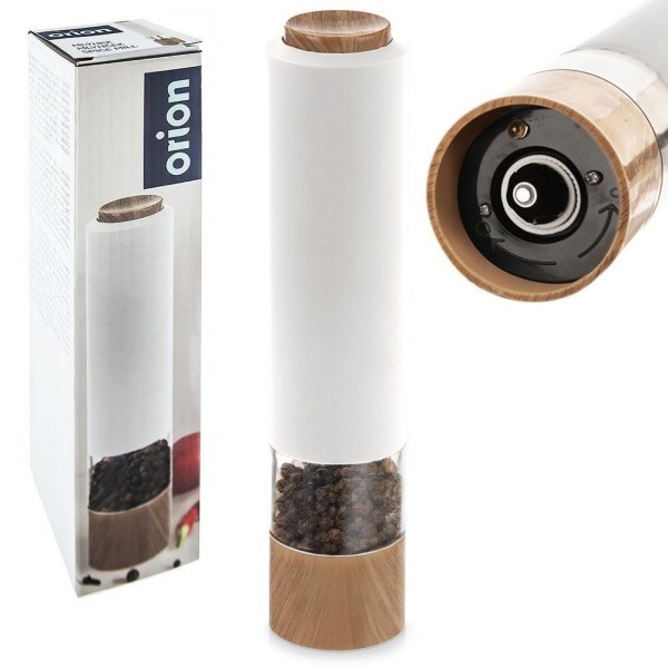 Młynek do przypraw Orion 130232 — elektryczny do soli i pieprzu, LED, biały 23 cm