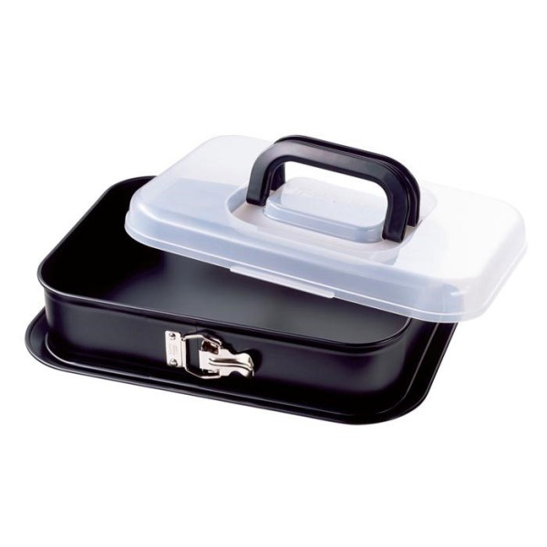 Tortownica KAISER Bake and Take 35x24 cm z pokrywą — do pieczenia i przenoszenia wyróżnia się przemyślanym projektem 2 w 1: forma do pieczenia zamienia się w szczelny pojemnik transportowy, co eliminuje potrzebę dodatkowych pudełek. Stalowa konstrukcja z powłoką nieprzywieralną i dobre przewodzenie ciepła zapewniają równomierne wypieki oraz łatwe wyjmowanie wypieków dzięki rozpinanej obręczy. Produkt powstał z myślą o wygodzie codziennego użytkowania — prosty w montażu, intuicyjny w obsłudze i bezpieczny podczas przenoszenia. Dzięki niemieckiej produkcji zachowuje wysokie standardy wykonania i kontroli jakości, co przekłada się na niezawodność przy częstym użyciu.Dodatkowe informacje