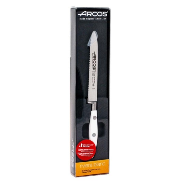 Nóż do warzyw Riviera White 130 mm – nóż do pomidora, 13 cm to precyzyjne narzędzie kuchenne przeznaczone do krojenia i przygotowywania warzyw oraz owoców. Produkt sprawdza się przy krojeniu pomidorów, ogórków, papryki i małych owoców; zapewnia dokładność cięcia, łatwość użycia i komfort pracy. Nóż do warzyw Riviera White 130 mm – nóż do pomidora, 13 cm łączy zaawansowane materiały z ergonomicznym uchwytem, co przekłada się na długotrwałą ostrość i bezpieczeństwo użytkowania.