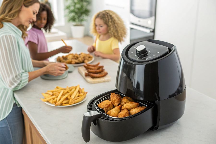 Funkcjonalność i wszechstronność – najbardziej opłacalne są urządzenia wielofunkcyjne z trybami: smażenie, pieczenie, grillowanie, rozmrażanie i podgrzewanie. Modele z podwójnymi komorami pozwalają na jednoczesne przygotowanie dwóch różnych potraw, co znacząco zwiększa ich użyteczność.