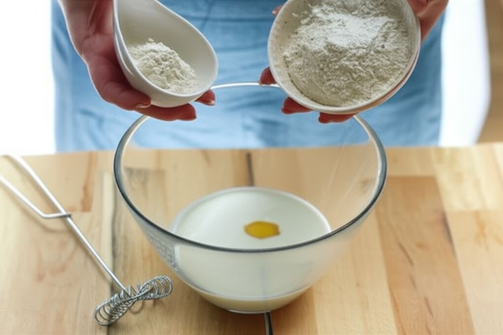 W misce wymieszaj w 1 szklance mleka obie mąki, budyń i jajko.