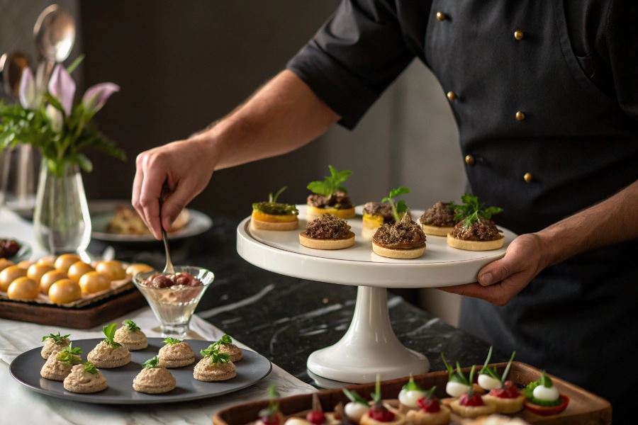 Pasztet wątrobowy doskonale sprawdza się jako baza dla innowacyjnych połączeń kulinarnych. Zawijanie pasztetu w ciasto francuskie z dodatkiem egzotycznych przypraw, takich jak kardamon, anyż gwiazdkowy czy gałka muszkatołowa, tworzy elegancką przekąskę o złożonym profilu smakowym. Ciasto można dodatkowo posmarować chutney’em z mango lub konfiturą z czerwonej cebuli, co wprowadza element słodko-kwaśny.