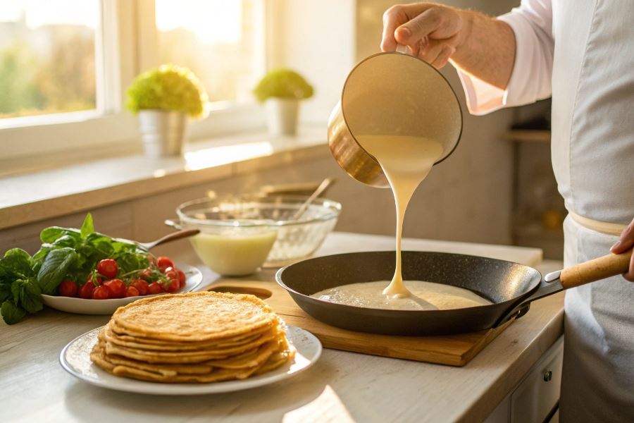 Odpoczynek ciasta przez minimum 30 minut (optymalnie 1-2 godziny) w temperaturze pokojowej to krok, którego nie należy pomijać. W tym czasie gluten się relaksuje, skrobia pęcznieje, a składniki lepiej się integrują. Efektem są elastyczne naleśniki, które nie rwą się podczas smażenia i mają delikatniejszą strukturę.