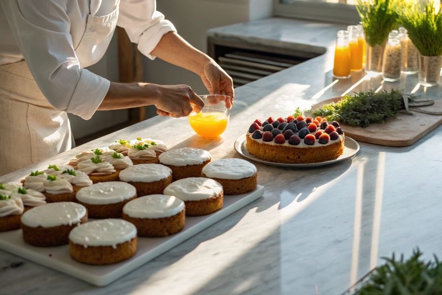Na świątecznych stołach w 2025 roku dominują minimalistyczne dekoracje z lukru postnego, często z dodatkiem naturalnych barwników z buraków, kurkumy czy spiruliny. Podczas uroczystości rodzinnych popularność zyskały personalizowane napisy wykonane z lukru postnego, które można przygotować z wyprzedzeniem i aplikować bezpośrednio przed podaniem. Technika brush embroidery (haftowanie pędzlem) pozwala tworzyć na wypiekach postnych delikatne, koronkowe wzory przypominające tradycyjne hafty.