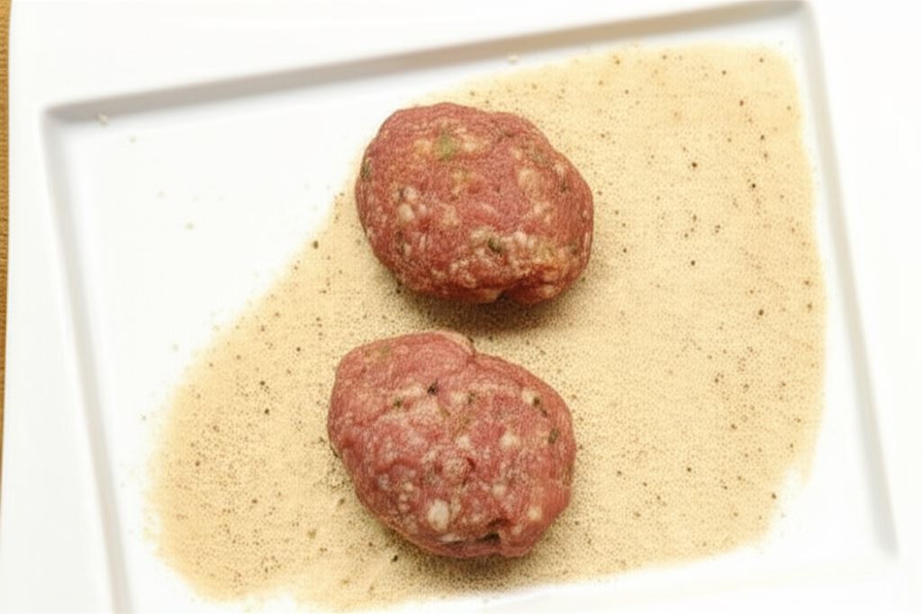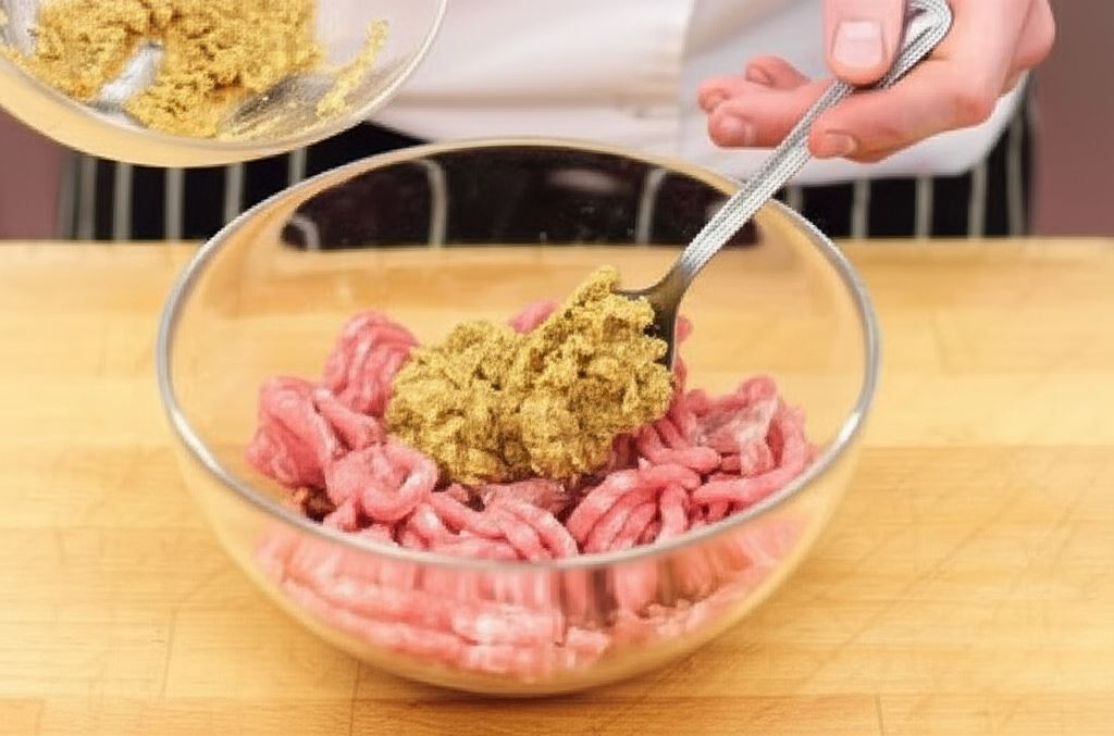 Wyjmij mięso z lodówki i odczekaj moment, by osiągnęło temperaturę pokojową. Fix Knorr połącz ze 100 ml wody i wlej do mięsa. Dokładnie wyrób całą masę.