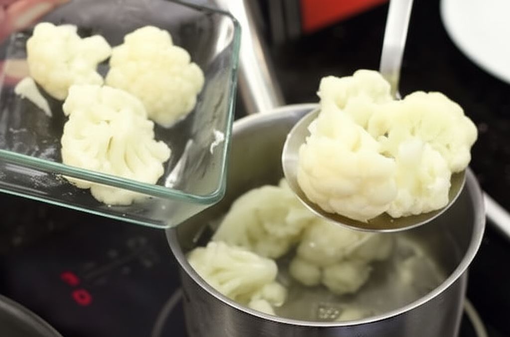 Świeżego kalafiora podziel na drobniejsze różyczki i gotuj w wodzie aż zmięknie. Warzywa z mrożonki gotuj od razu po otwarciu opakowania przez minutę. Potem odcedź i umieść z powrotem w garnku.