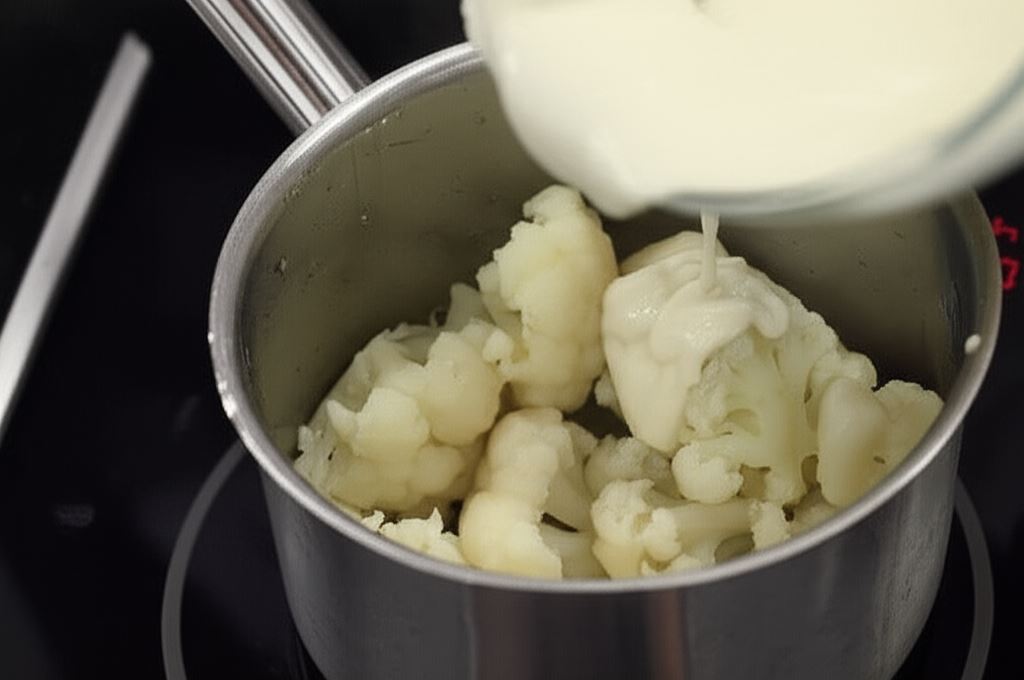Przyprawę Naturalnie Smaczne Chłopski Garnek Knorr połącz ze śmietaną i dodaj do gotującego się kalafiora.