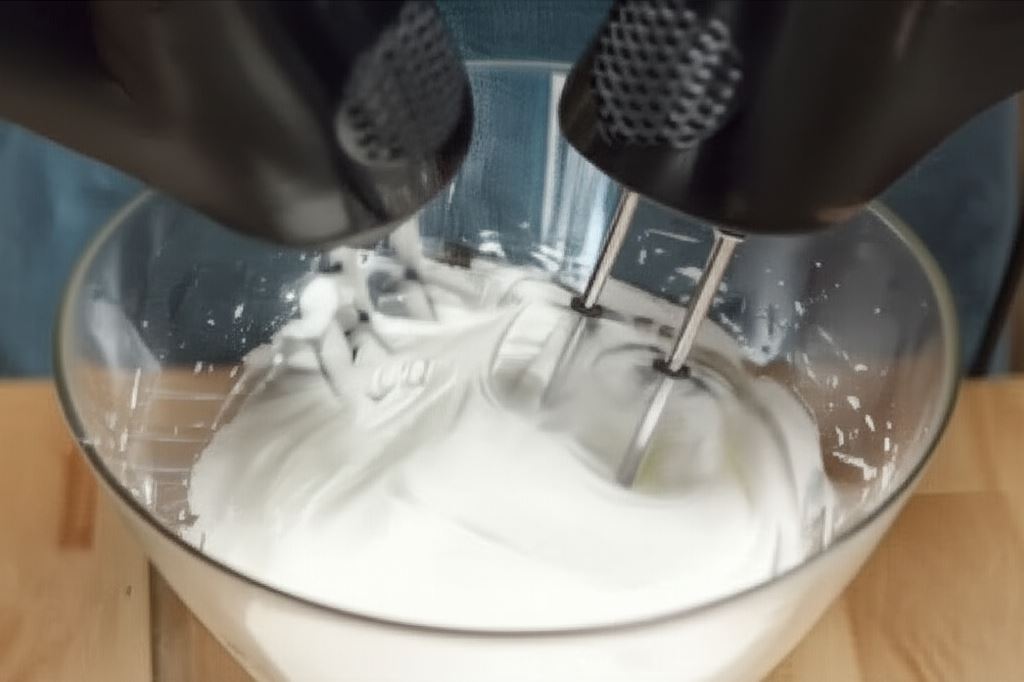 Oddziel białka od żółtek, ubij je na sztywną pianę. Podczas końcowej fazy ubijania dodawaj stopniowo cukier i po kolei żółtka, cały czas ubijając. Do ubitej masy jajowej dodaj przesiane mąki obu rodzajów. Delikatnie połącz składniki za pomocą rózgi kuchennej, aby się zmieszały.