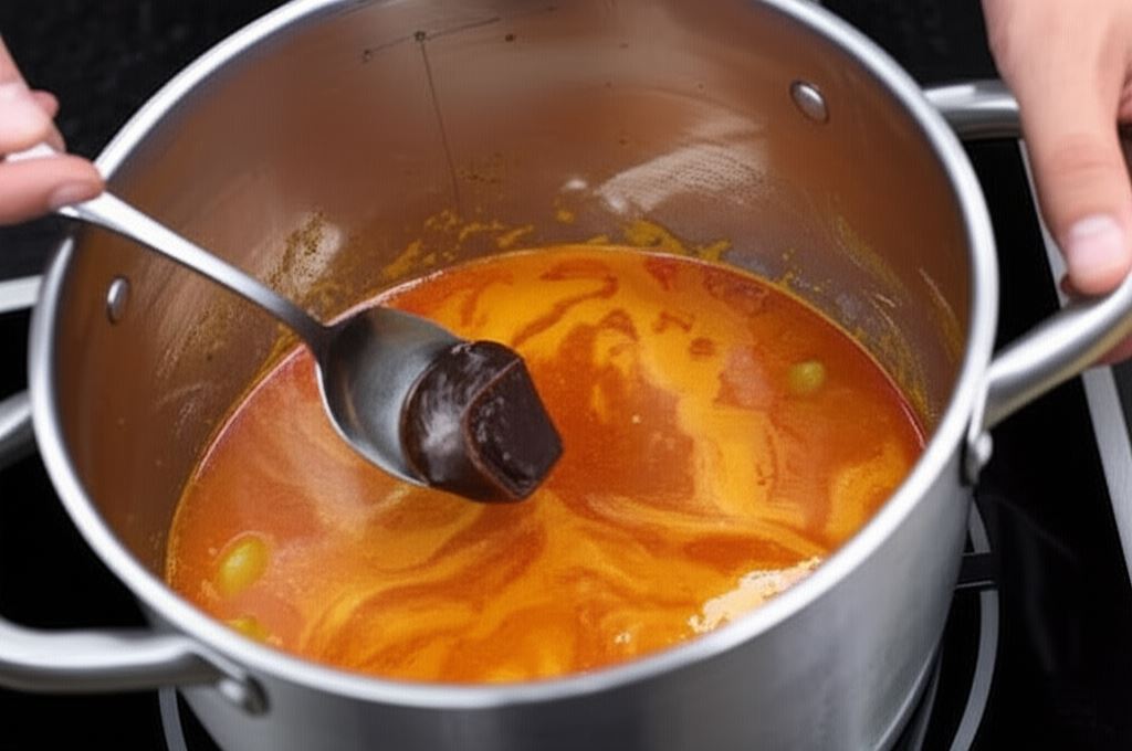 Mięso zalej 600 mililitrami wody, dodaj Sos do pieczeni ciemny Knorr, który wzbogaci smak dania i doprowadź do wrzenia. Zmniejsz temperaturę i duś aż będzie miękkie (w razie potrzeby uzupełniając płyn).