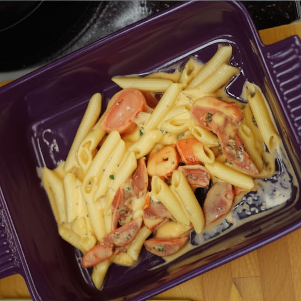 Odkryj wyjątkową zapiekankę makaronową z chorizo – danie, które łączy w sobie prostotę przygotowania z bogactwem smaków kuchni hiszpańskiej. To kompozycja al dente makaronu penne lub fusilli, pikantnej kiełbasy chorizo, słodkich pomidorków koktajlowych i kremowego sosu śmietanowego, przykryta złocistą warstwą sera i chrupiących nachosów.