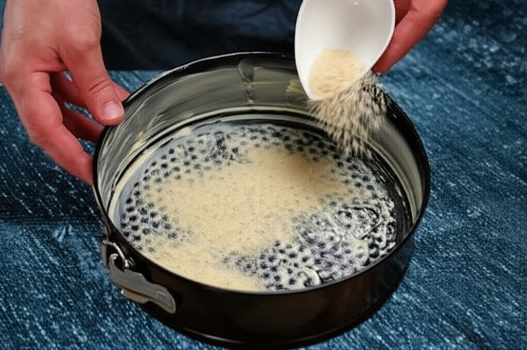 Formę tortową nasmaruj masłem i wysyp bułką tartą.