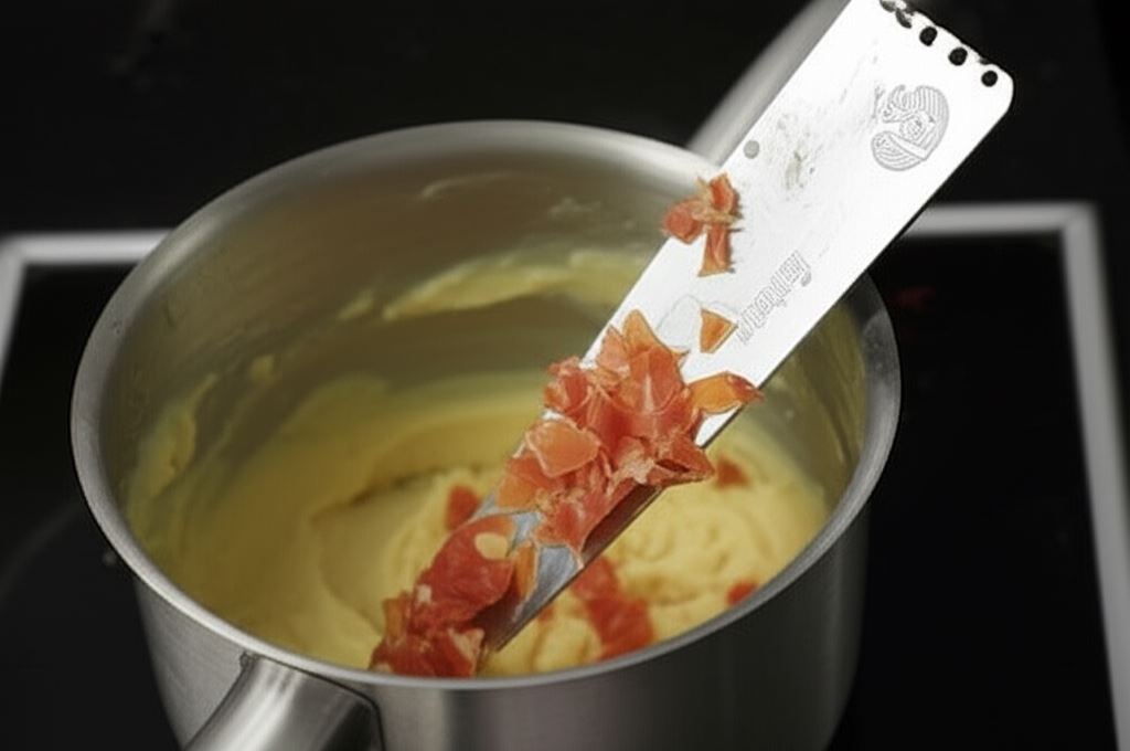 Dodaj parmezan i starannie zamieszaj, aż sos stanie się gęsty i jedwabisty.