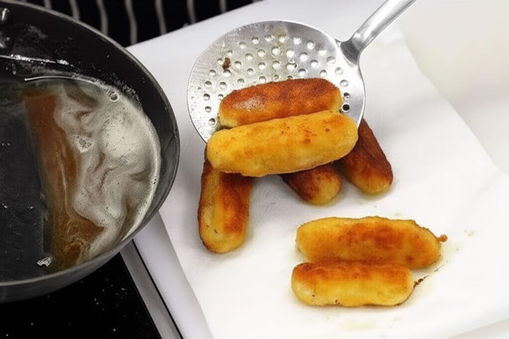 Rozgrzej olej w garnku, smaż krokieciki do złotego koloru i osącz z tłuszczu na papierowym ręczniku. Serwuj ciepłe z sosem meksykańskim Knorr zmieszanym z majonezem i ketchupem.