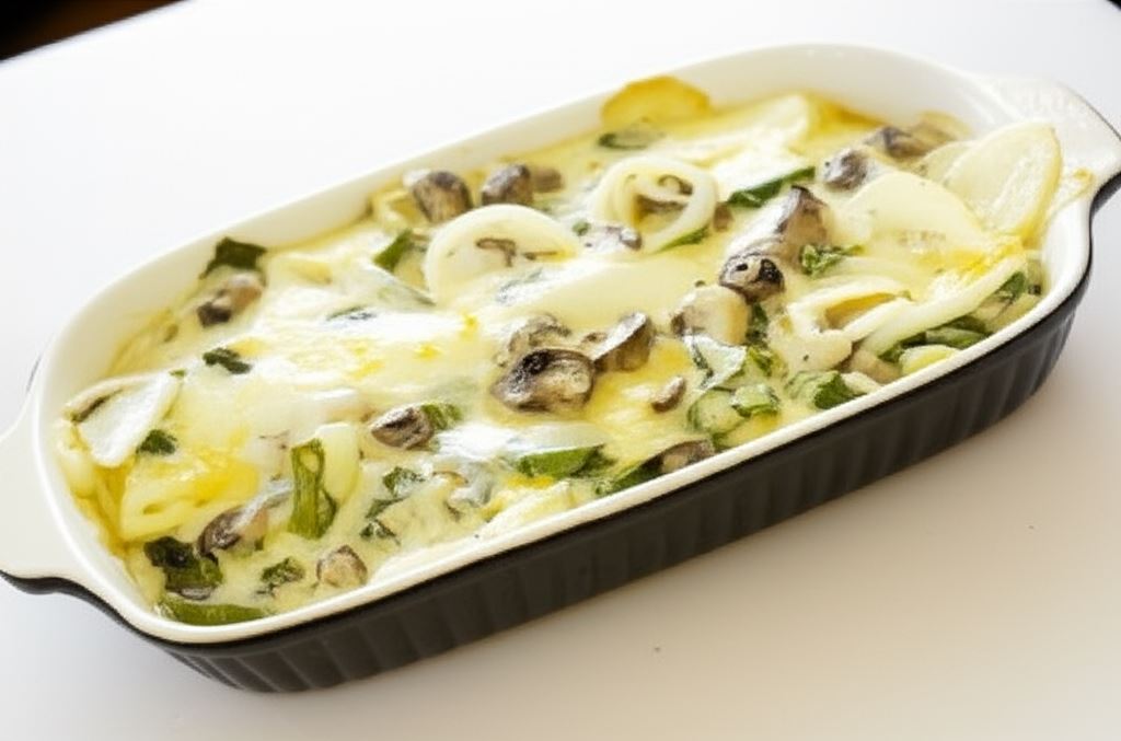Szpinak dodany do zapiekanki nie tylko wzbogaca jej smak, ale także dostarcza cennych składników odżywczych. Połączenie szpinaku z kremowym sosem serowym sprawia, że nawet osoby niechętne warzywom z przyjemnością sięgną po dokładkę!