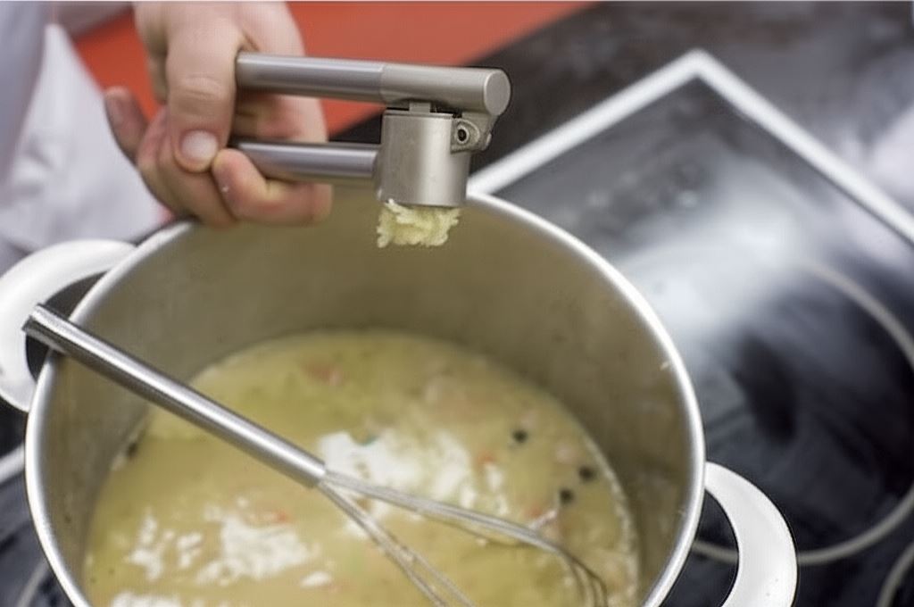Przypraw przeciśniętym przez praskę czosnkiem i gotuj przez kolejne 10 minut.