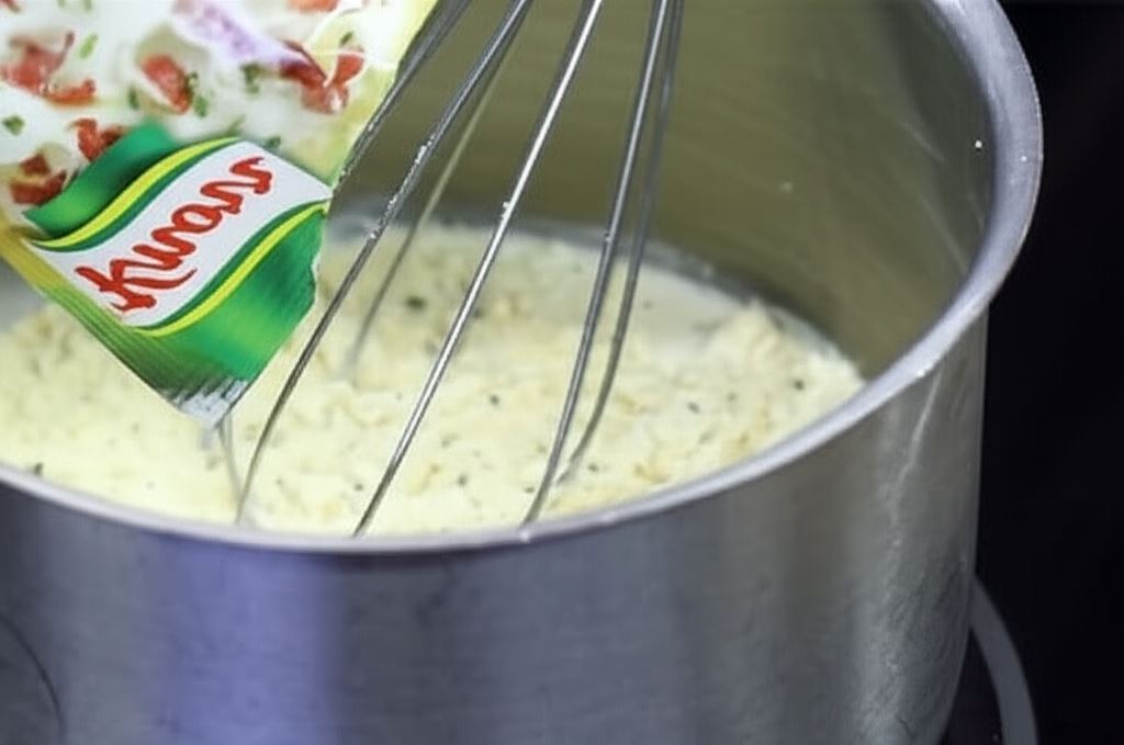 Wymieszaj fix Knorr z bulionem i doprowadź do wrzenia. Potem odstaw, aby ostygł i połącz go z jajkiem.