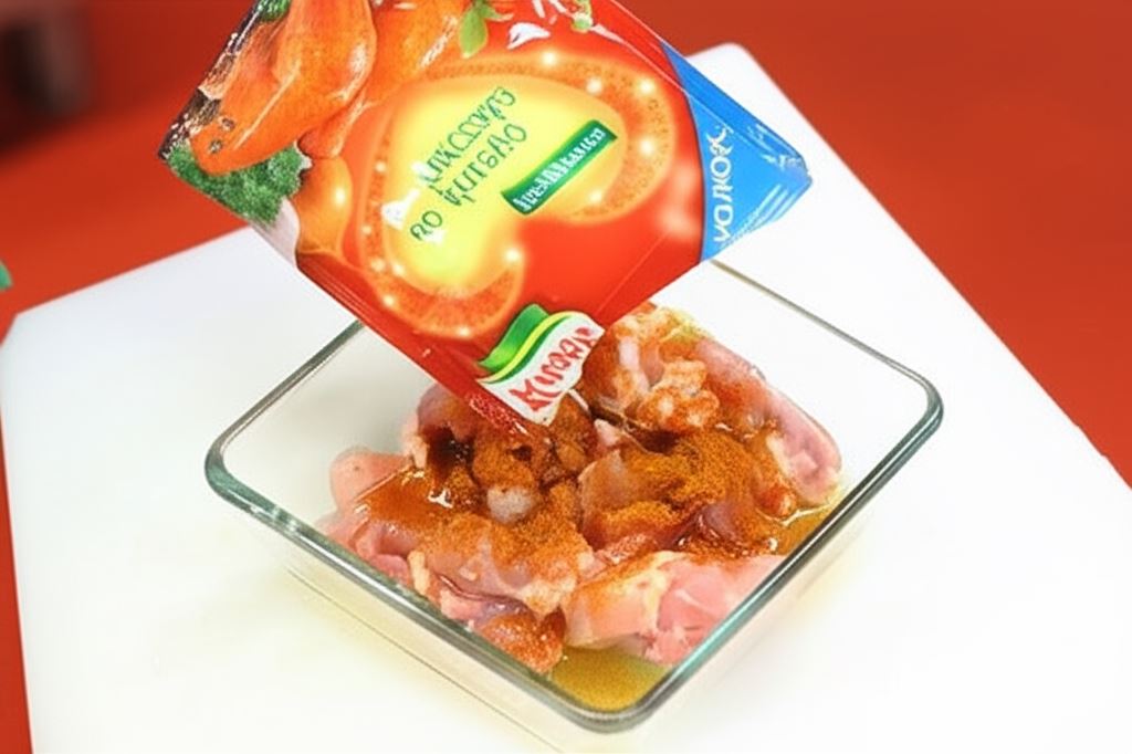 Mięso potnij na paski i przypraw przyprawą Knorr.