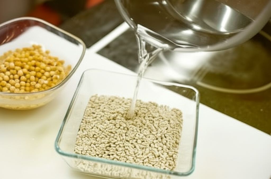 Opłucz groch i pęczak, po czym namocz je oddzielnie w zimnej, przegotowanej wodzie.