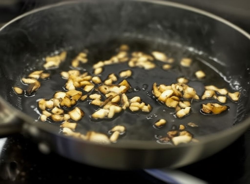 Przypraw majerankiem i zmiażdżonym czosnkiem. Gotuj przez 5 minut.