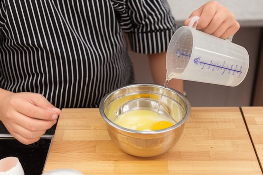 Sporządź ciasto na pyzy łącząc fix i 300 ml wody wraz z jednym jajkiem. Mieszaninę odłóż na 10 minut na bok aby stężała.
