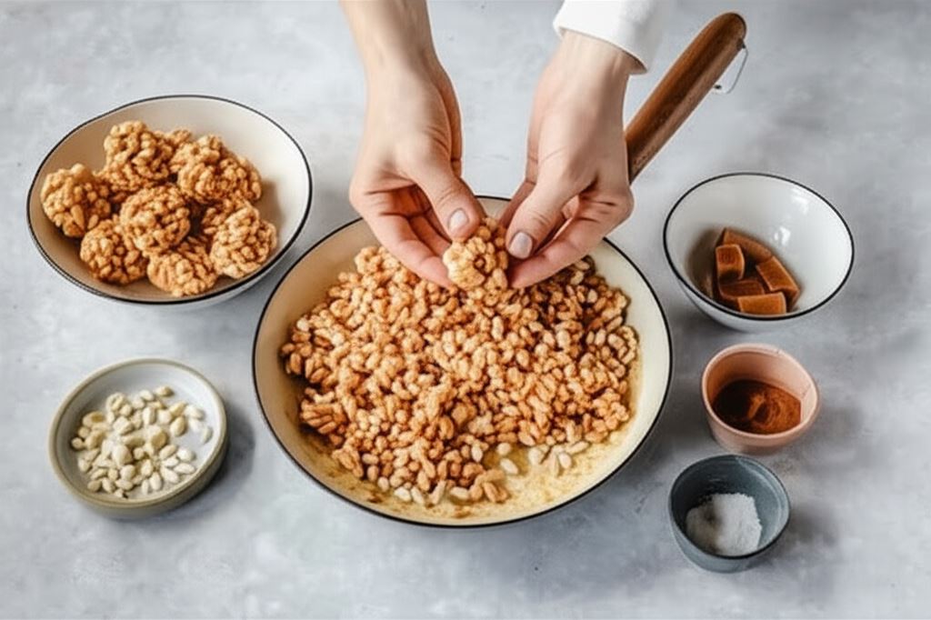 Szyszki z ryżu preparowanego w karmelu świetnie smakują także z masą kajmakową. Możesz również eksperymentować z dodatkami – odrobiną orzechów, wiórków kokosowych czy nawet suszonej żurawiny, które nadadzą deserowi nowego wymiaru smakowego i wizualnego.