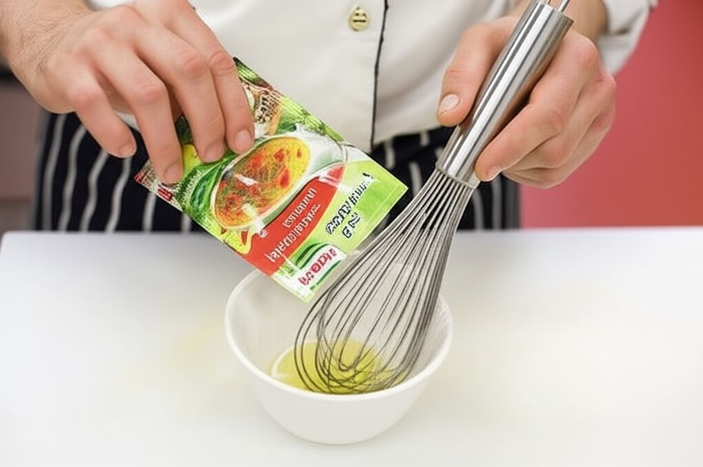 Wymieszaj oliwę z sokiem cytrynowym i sosem sałatkowym Knorr.