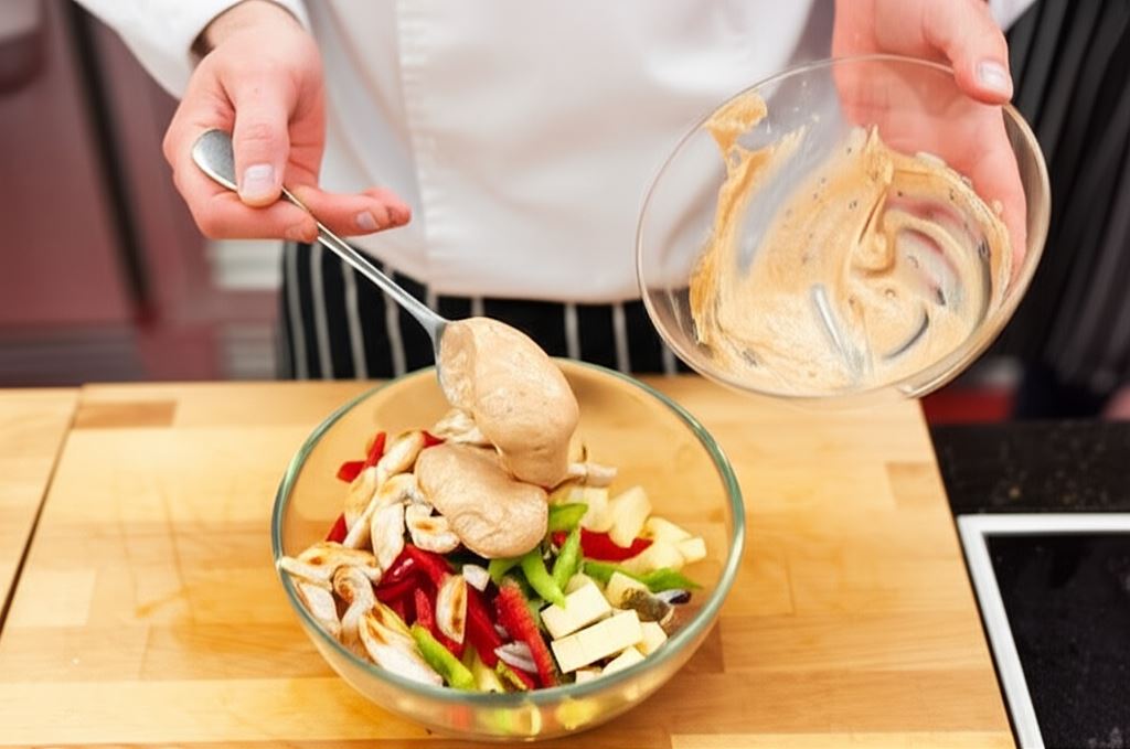 Sekret wyjątkowego smaku tej sałatki tkwi w dressingu! Połączenie sosu czosnkowego Knorr z Majonezem Hellmann’s Light i Ketchupem Hellmann’s tworzy idealnie zbalansowany sos, który nadaje całości charakteru. Pamiętaj, by nie żałować sosu – w końcu to sałatka szefa!