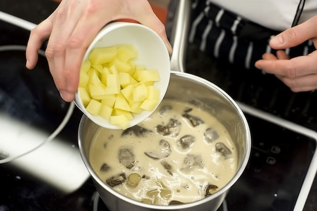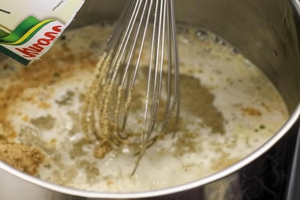 Wlej do wrzącego wywaru z grzybów Kremową zupę borowikową Knorr, mieszając nieprzerwanie.