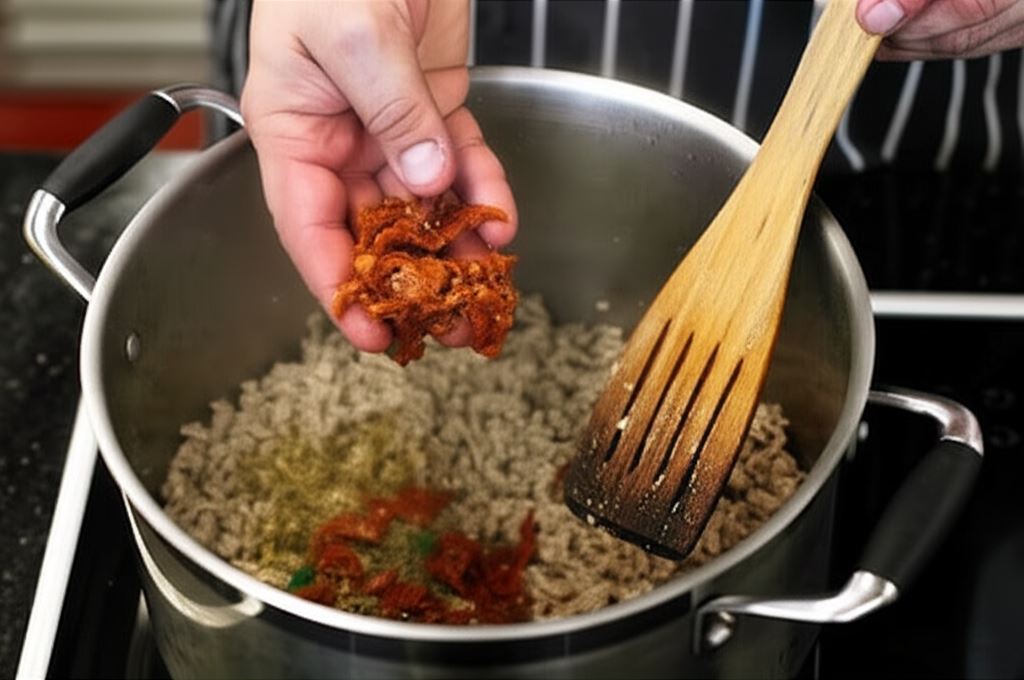 Wlej 250 ml wody do mięsa, wsyp Knorr Naturalnie smaczne - Lasagne i zamieszaj. Gotuj sos przez 5 minut na małym ogniu.