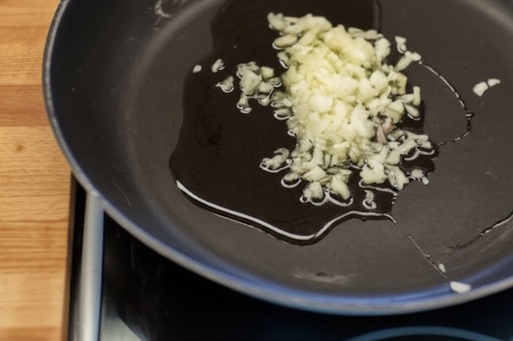 Na sporej patelni zeszklij na oleju drobno posiekaną cebulę.