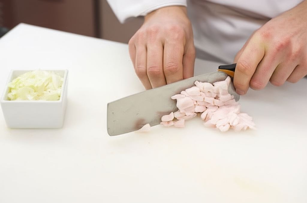 Pokrój słoninę i cebulę w kostkę. W rondlu usmaż, następnie dodaj poszatkowaną kapustę.