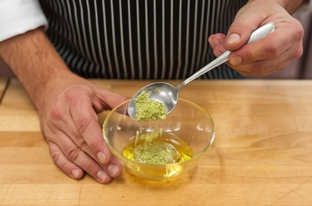 Sporządź sos według wskazówek na opakowaniu, wlewając do opakowania sosu sałatkowego Knorr, 3 łyżki oleju i 3 łyżki wody. Wszystko zamieszaj i pozostaw na 10-15 minut.