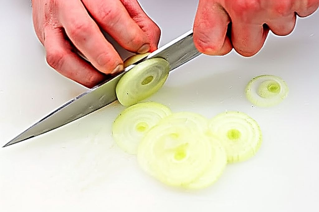 W międzyczasie pokrój cebule na plastry i nagrzej grill.