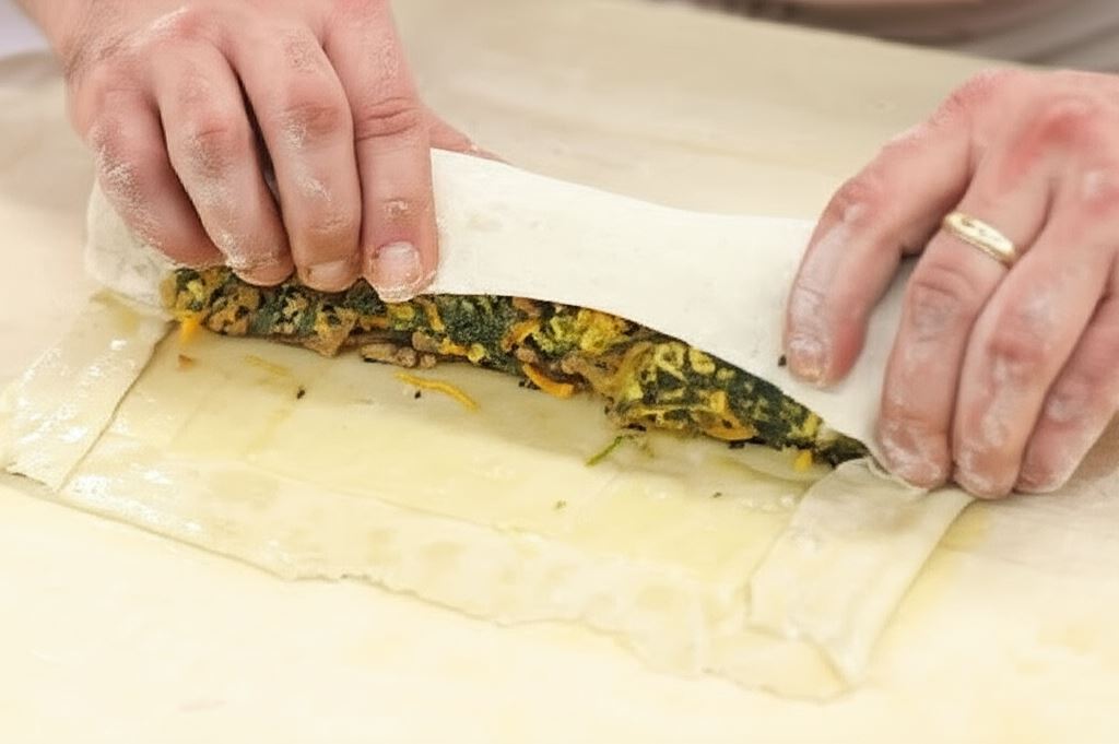 Eleganckie roladki z ciasta francuskiego ze szpinakiem