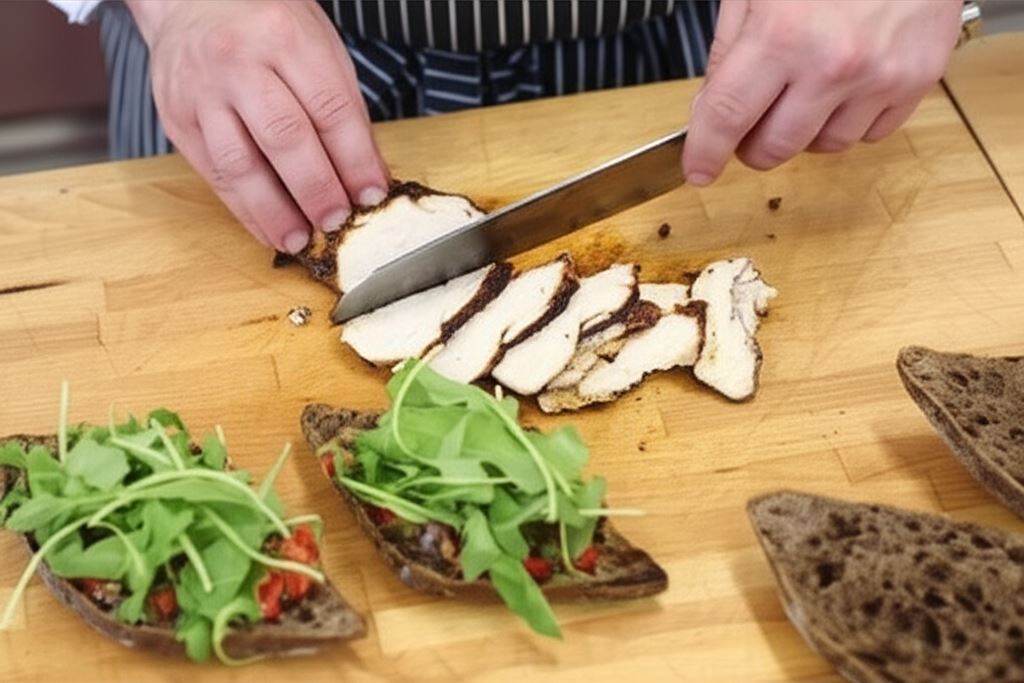 Możesz zamienić kurczaka na grillowanego łososia lub tofu dla wersji wegetariańskiej. Rukolę zastąp sałatą masłową lub miksem sałat. Eksperymentuj z dodatkami – świeże pomidory, ogórki czy awokado świetnie uzupełnią smak kanapki. Dla bardziej wyrazistego akcentu dodaj kilka kropel sosu sriracha lub łyżeczkę pesto.