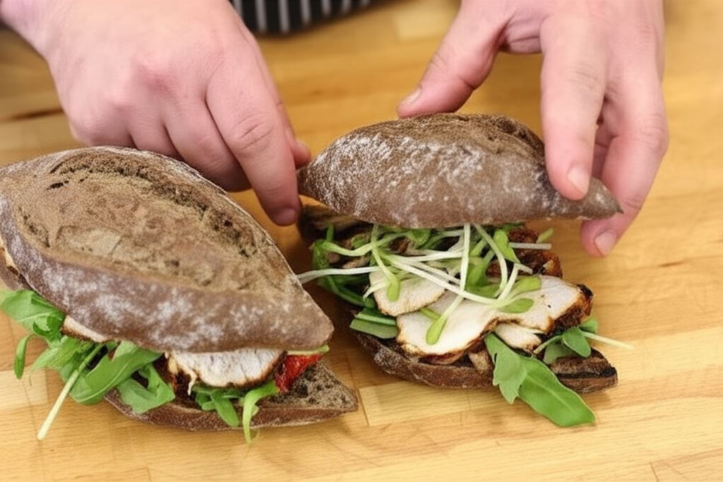 Chrupiąca orkiszowa kanapka z kurczakiem i pastą warzywną