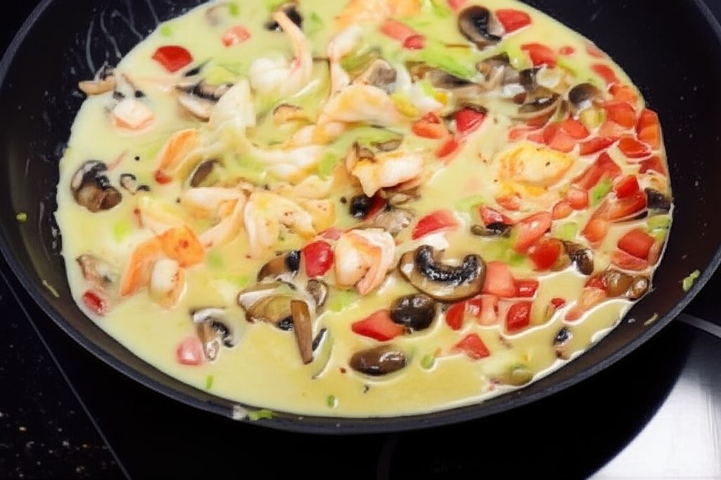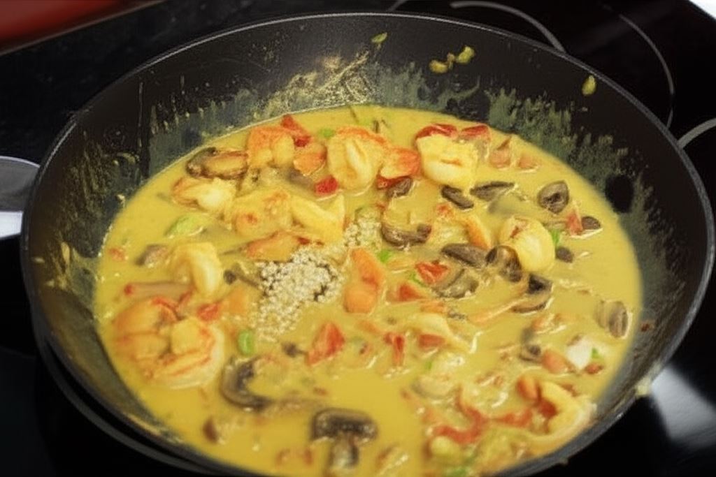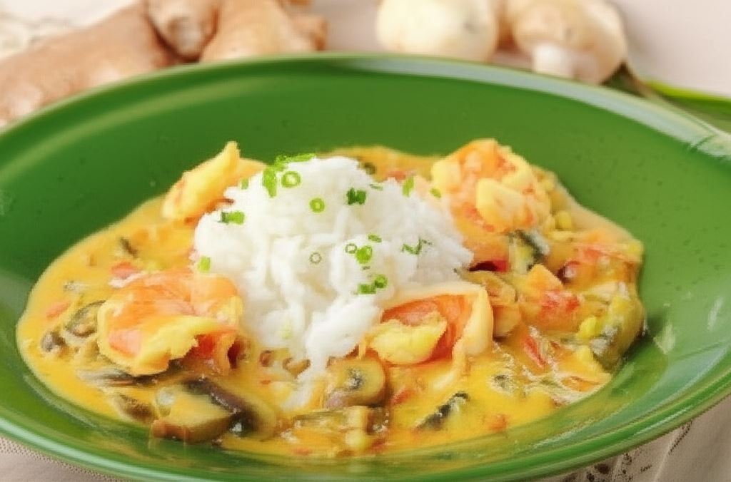 Odkryj smak orientu z naszymi kokosowymi krewetkami! To aromatyczne danie inspirowane kuchnią indyjską łączy w sobie delikatność owoców morza z kremowym, kokosowym sosem. Chrupiące krewetki, soczyste pieczarki i aromatyczne przyprawy tworzą harmonijną kompozycję, która przeniesie Cię w kulinarną podróż do dalekich Indii.