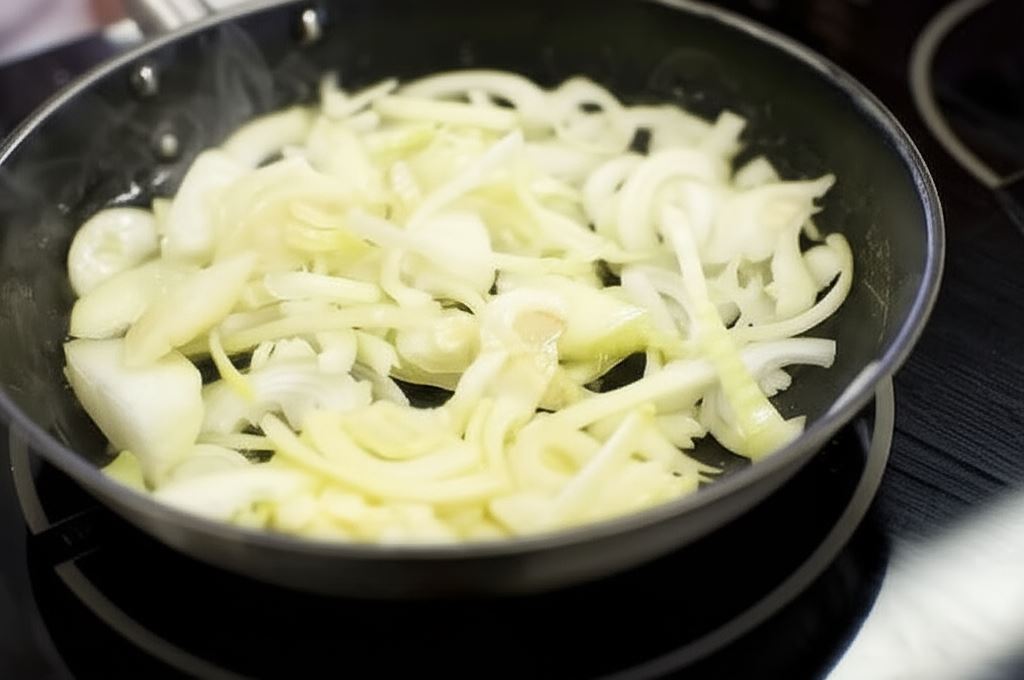 Posiekaj cebule w krążki i zeszklij z masłem na patelni, a następnie odłóż do wystygnięcia.