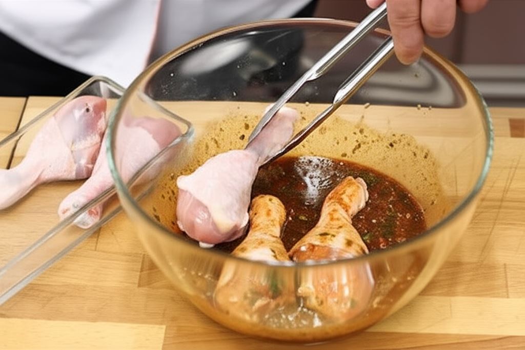 W przygotowanej marynacie umieść pałki kurczaka i pozostaw w chłodnym miejscu przez minimum 12 godzin.