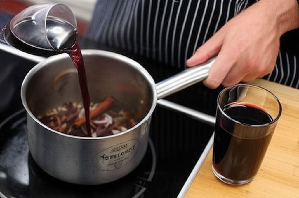 W garnku skarmelizuj cukier. Gdy zbrązowieje, dodaj cebule i smaż przez moment. Wsyp cynamon i goździki, a następnie zalej czerwonym winem oraz sokiem z czarnej porzeczki. Gotuj wszystko razem około 30 minut, dopóki cały sok nie wyparuje i zostanie tylko cebula. Odstaw cebule do wystygnięcia.