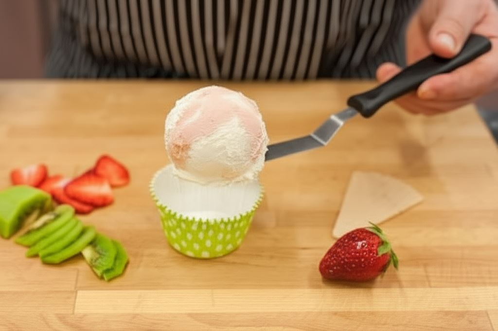 Porcję lodów umieść w papierowej foremce do muffinek.