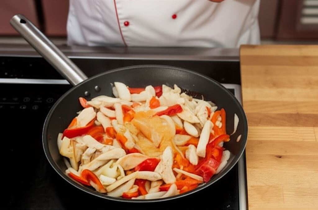 Delikatne kawałki kurczaka otulone aksamitnym sosem o aromacie papryki i pieczarek, z dodatkiem soczystej czerwonej papryki i cebuli – to właśnie nasz ekspresowy gulasz z kurczaka! To danie, które zachwyca prostotą przygotowania i bogactwem smaku. Wystarczy pokroić składniki w cienkie paseczki, podsmażyć je kolejno na patelni, a następnie połączyć z kremowym sosem. Całość gotuje się zaledwie 4 minuty, a efekt jest naprawdę imponujący!