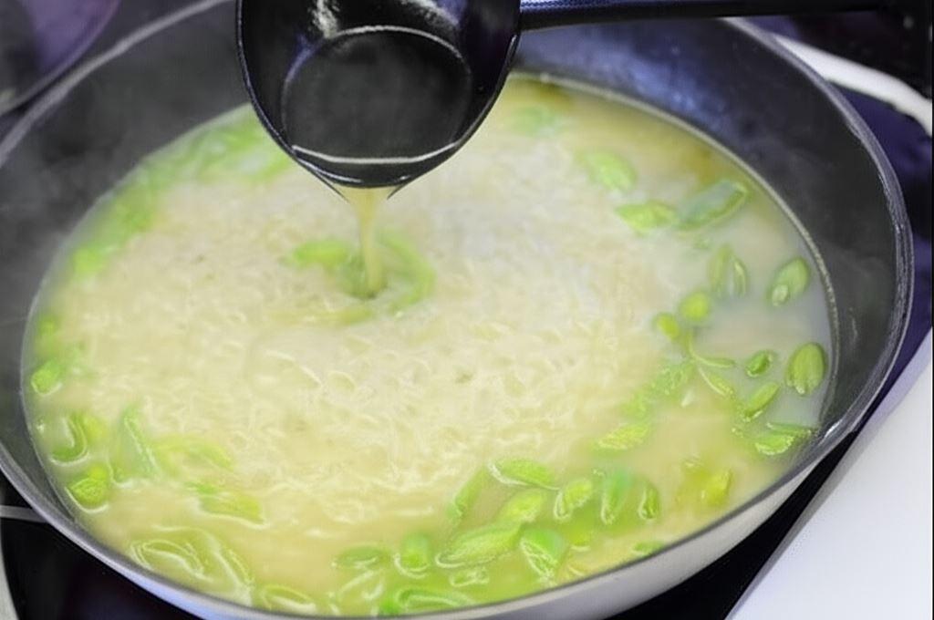 Pokryj ryż bulionem tak, by płyn sięgał ponad centymetr nad ryż. Gotuj na małym ogniu pod przykryciem przez 15 minut. Potem odstaw na 5 minut.