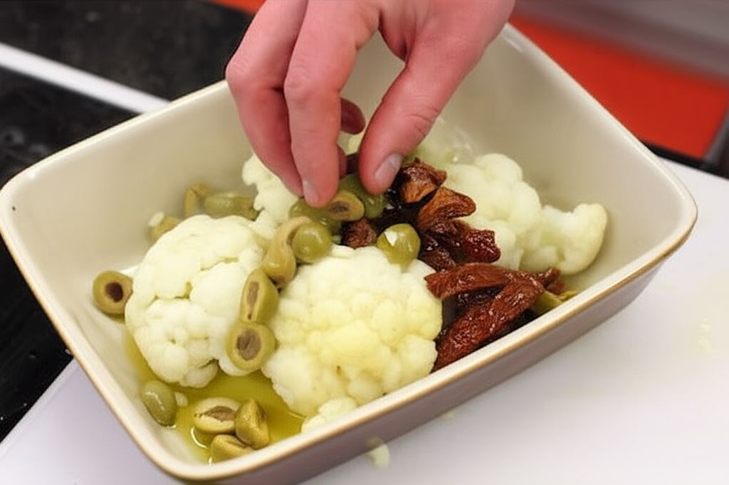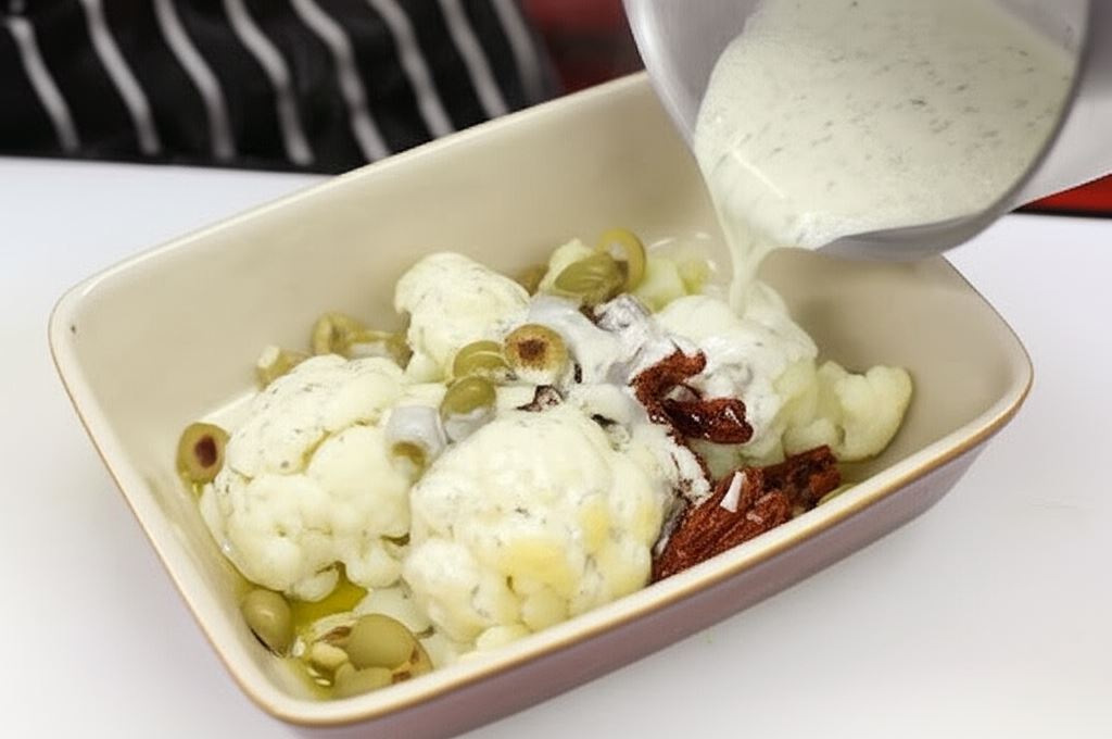 Kremowa zapiekanka warzywna z oliwkami to doskonały pomysł na lekki, a jednocześnie sycący obiad. Soczyste pomidory, chrupiący kalafior i wyraziste oliwki tworzą harmonijne połączenie smaków, które zachwyci nawet najbardziej wymagających smakoszy. Sekret tej potrawy tkwi w delikatnym sosie na bazie Fixu Knorr i śmietany, który otula warzywa aksamitną konsystencją, a aromatyczna posypka z ziół i bułki tartej dodaje całości chrupkości.