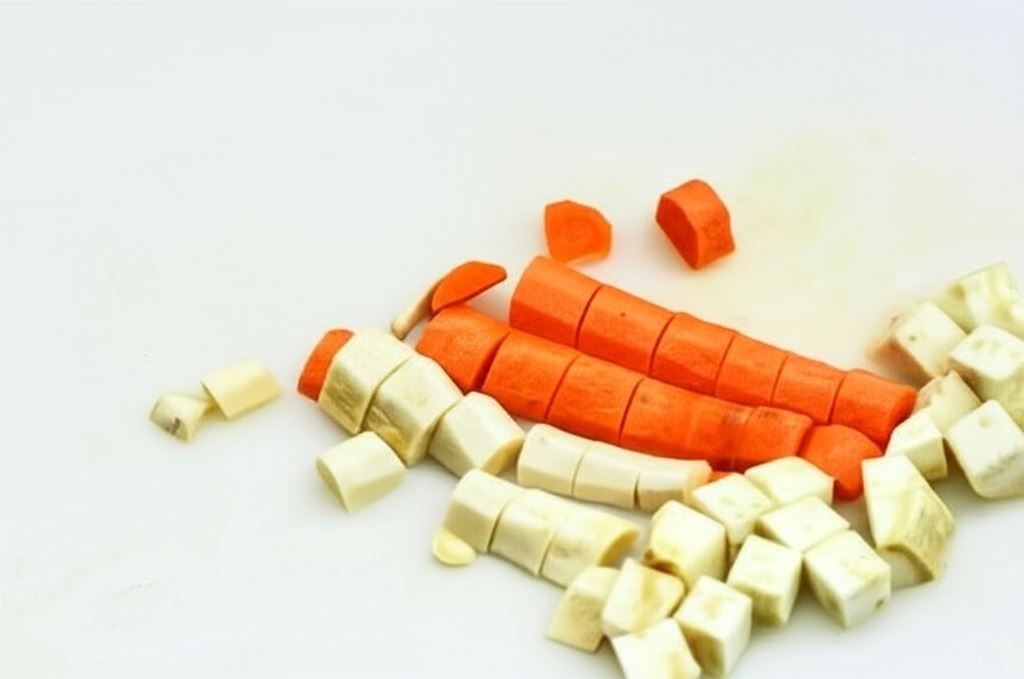 Włoszczyznę umyj, obierz i potnij na kawałki.