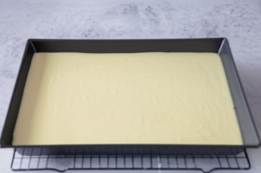 Sporządź masę serową. Twaróg wymieszaj mikserem z cukrem, jajkami, żółtkiem, mąką ziemniaczaną i rozpuszczonym masłem. Umieść na blasze (na utartej, kakaowej warstwie ciasta).