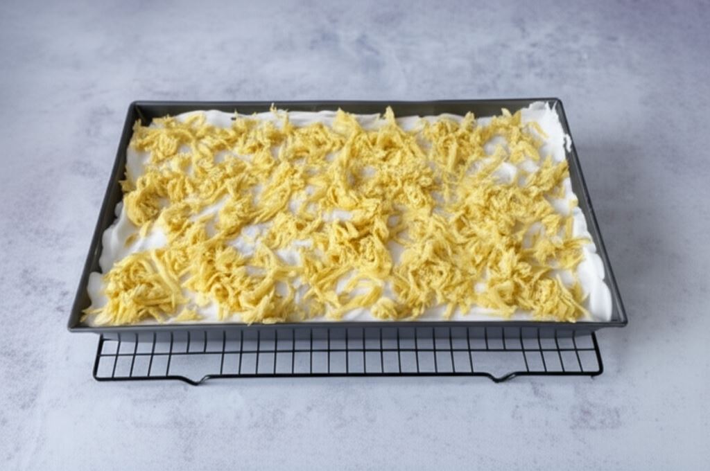 Sekret idealnego haratańca tkwi w starannym przygotowaniu każdej warstwy. Kruchy spód, który najpierw lekko podpiekamy, stanowi doskonałą bazę dla słodko-kwaśnego dżemu wiśniowego. Na to nakładamy aksamitną masę serową, a całość wieńczymy puszystą pianką z białek i delikatnie startym ciastem. Każdy kęs to prawdziwa uczta dla podniebienia!