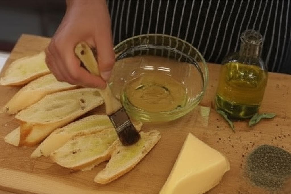 Wymieszaj posiekany czosnek z oliwą, następnie nasmaruj nią wszystkie kromki. Wymieszaj ser z resztą przyprawy Knorr, ułóż na nasmarowanych kromkach i zapiekaj w piekarniku do złotego koloru. Zupę serwuj z grzankami.