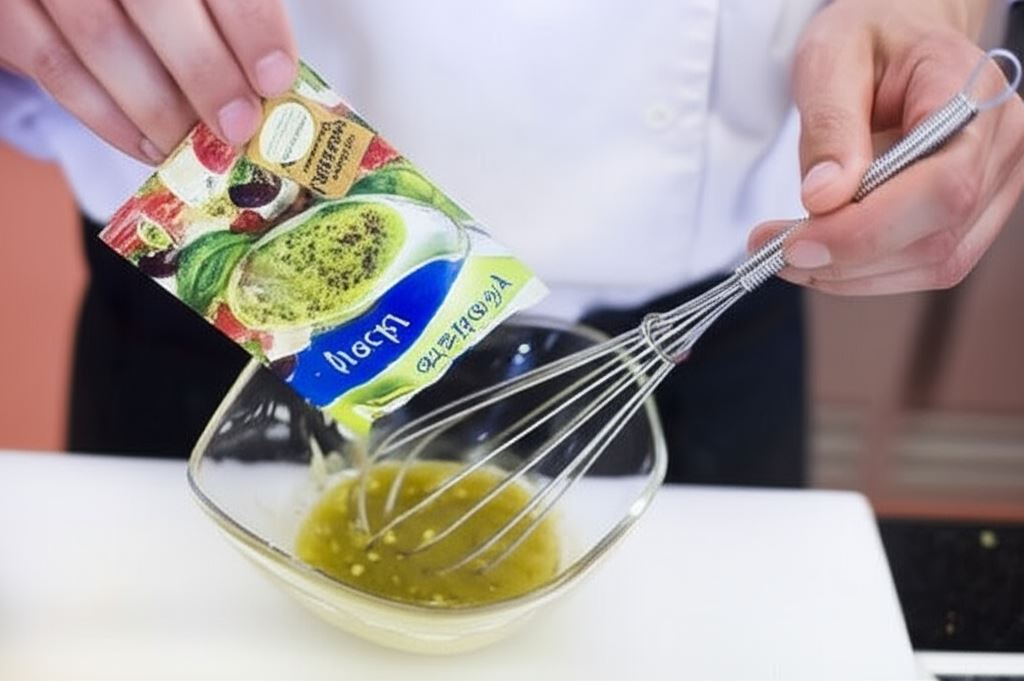 Sporządź sos sałatkowy Knorr zgodnie z instrukcją na opakowaniu, a następnie skrop nim sałatkę.