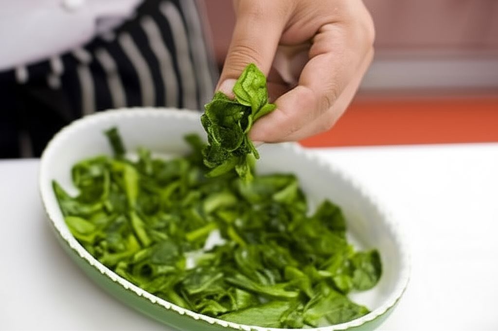 Umieść odmrożony szpinak na spodzie naczynia żaroodpornego. Ugotuj fasolę.